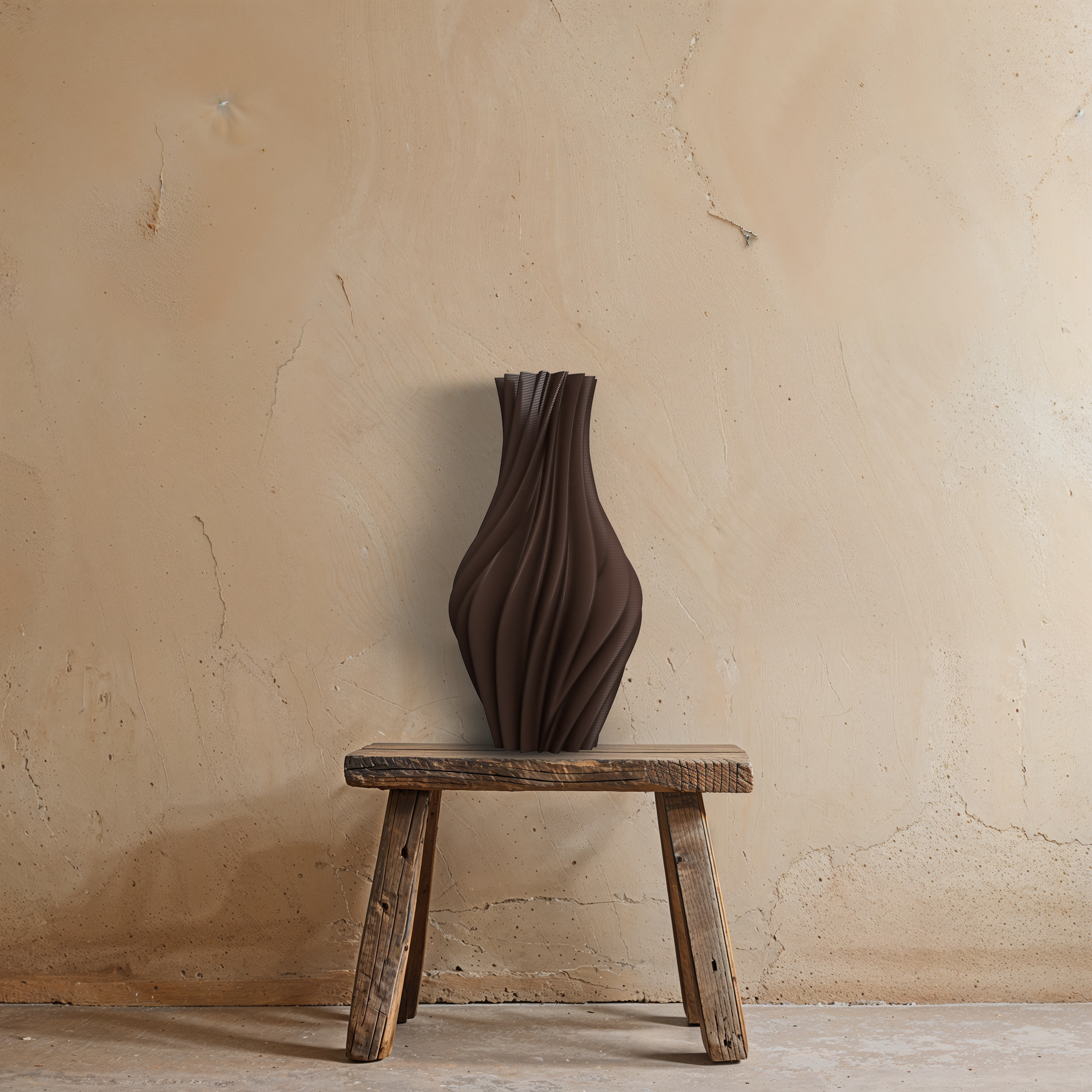 Modern Ambacht Hoewel deze vaas tot leven komt met behulp van innovatieve 3D-printtechnologie, voelt hij allesbehalve industrieel aan. Dankzij de subtiele gelaagdheid van de print krijgt het object een unieke textuur en een ambachtelijk karakter. Het warme, natuurlijke kleurenpalet zorgt ervoor dat de vaas moeiteloos blendt in elk huis, van landelijk tot modern.